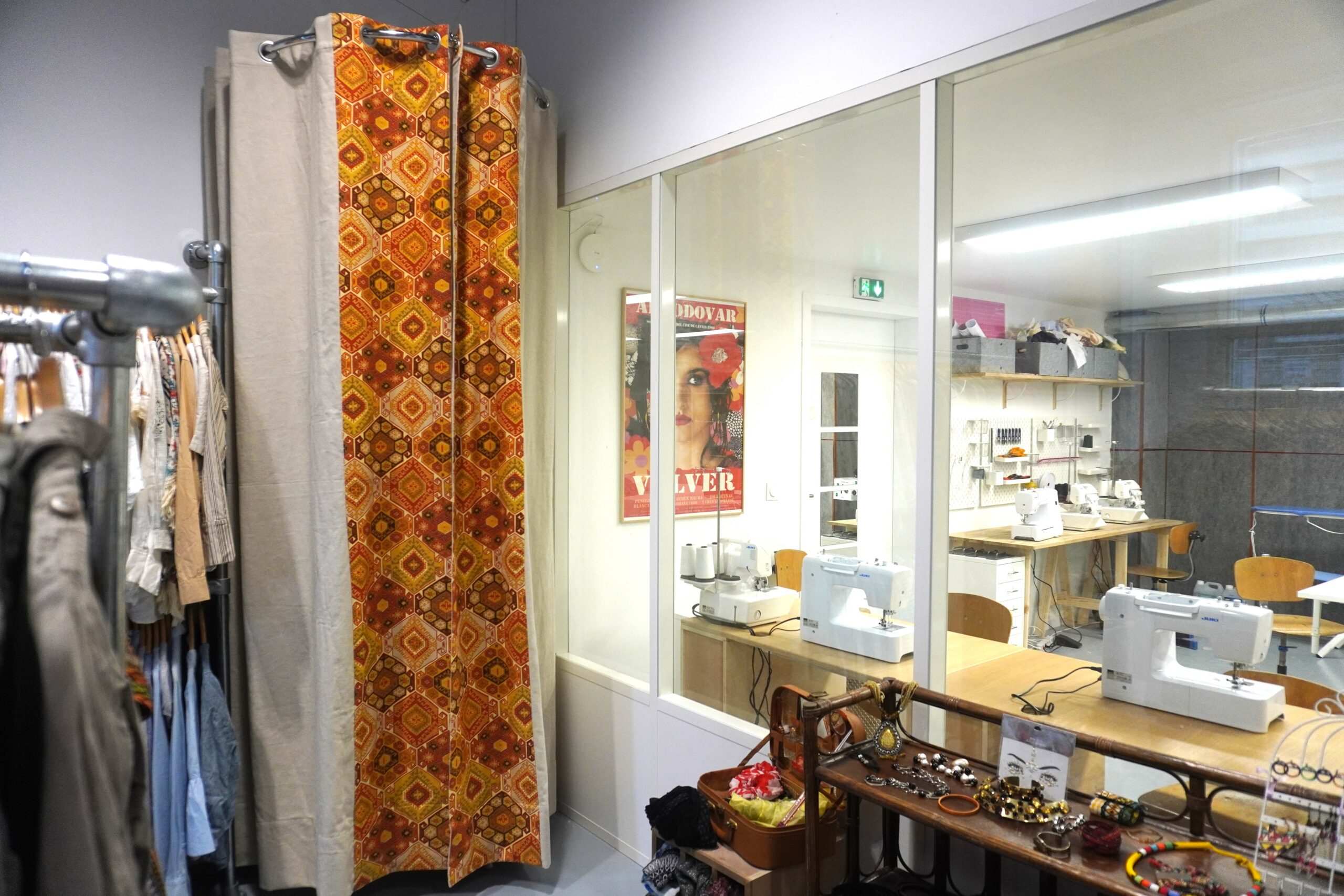 Activités : recyclerie textile + boutique café + ateliers couture + événements