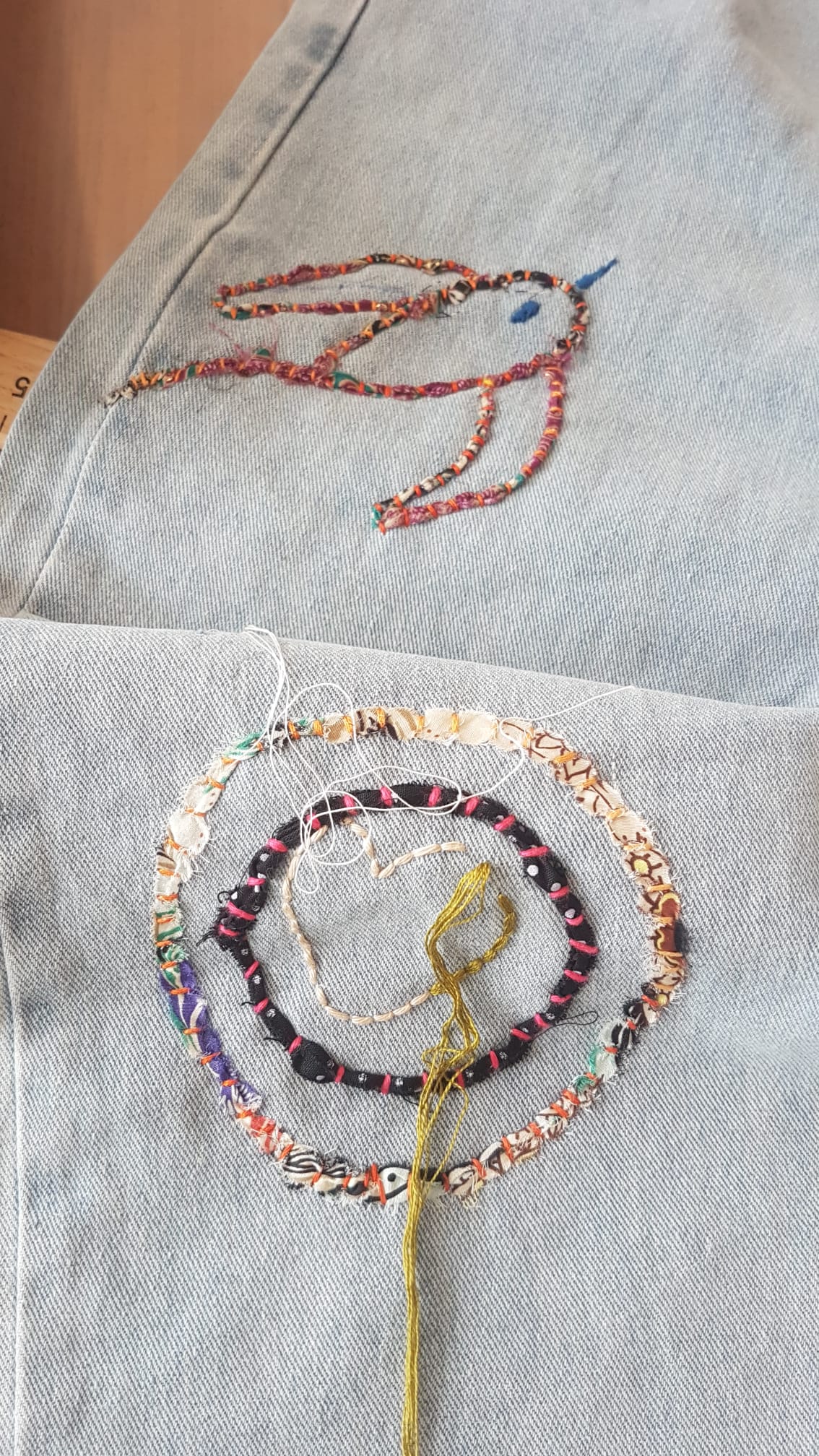- Atelier customisation de vêtements avec pose de patchs en tissu, broderie…