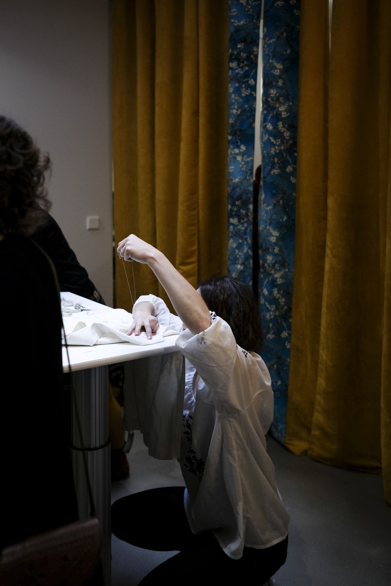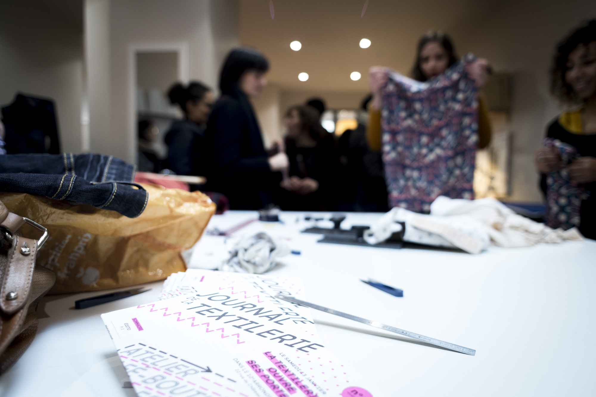 Une des missions de La Textilerie est de sensibiliser et d’agir pour la réduction des déchets textiles. Dans cette optique et dans le but de permettre à tout le monde d’avoir les moyens de réparer ses vêtements, nous mettons à disposition notre espace atelier régulièrement le vendredi après-midi. Khadija est là pour transmettre ces gestes : repriser, rapiécer, réparer une déchirure, coudre un bouton, faire un ourlet, changer un élastique…