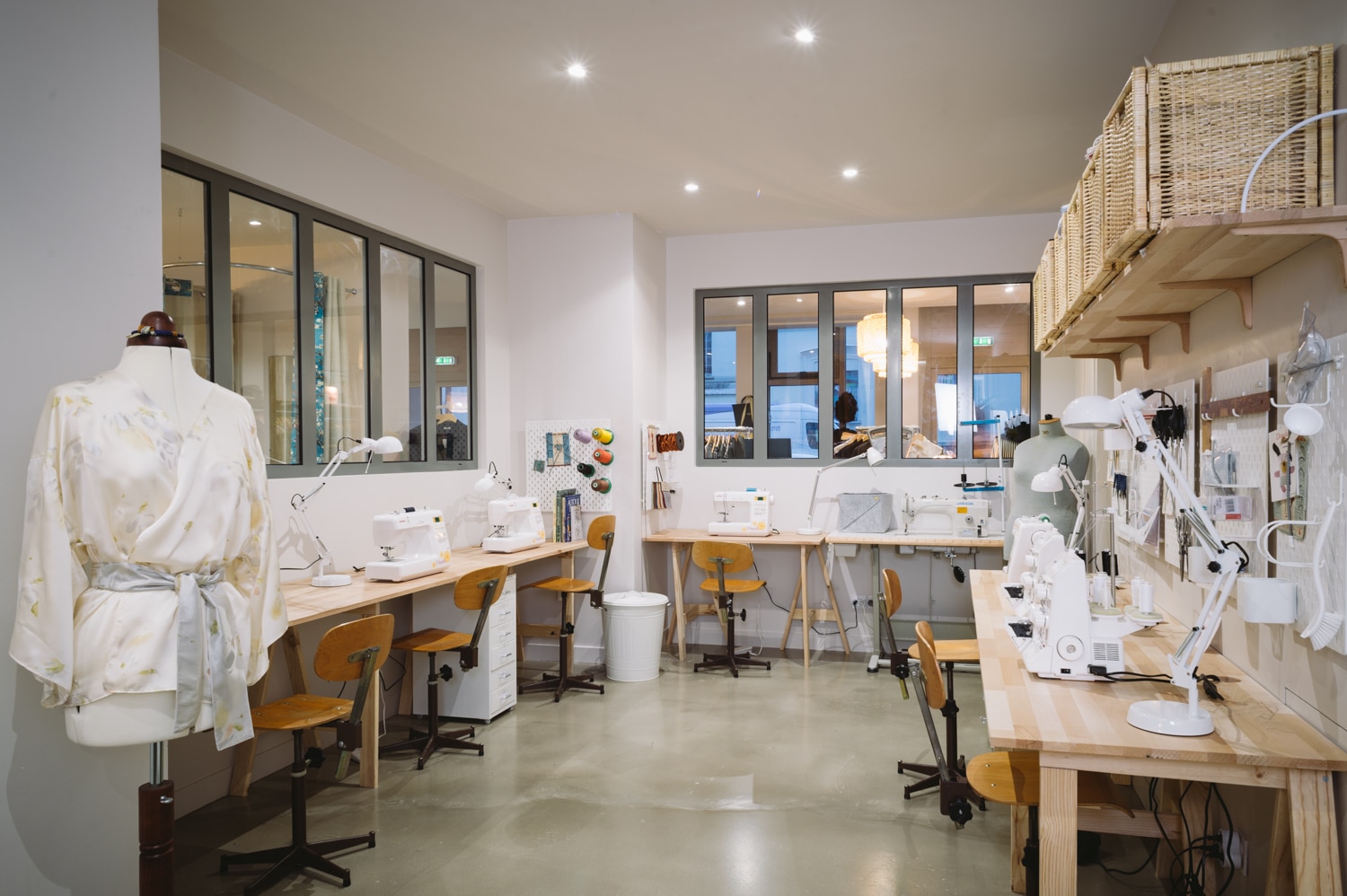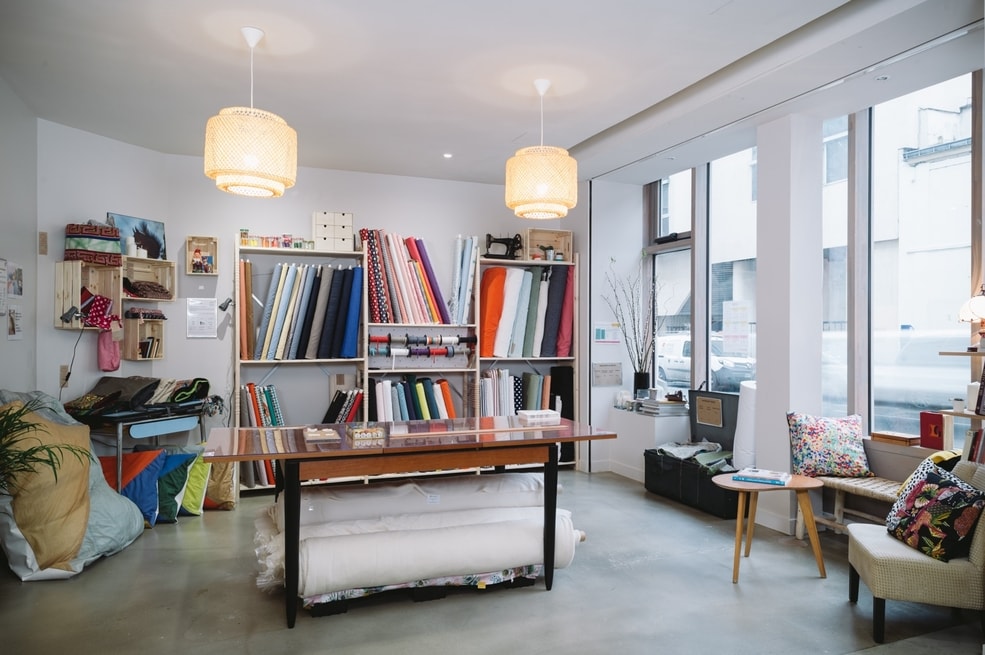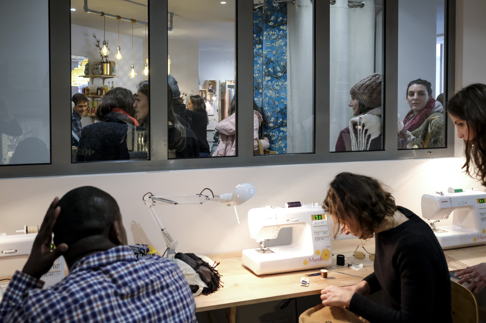 A deux pas de la Gare du Nord et de la Gare de l’Est se trouve le premier lieu ouvert par l’association La Textilerie en 2018, dans un local loué à la SEMAEST. Un très bel espace de 130m2 avec boutique, café, atelier-couture, ouvert à tout.e.s ! C’est aussi le siège social de l’association.