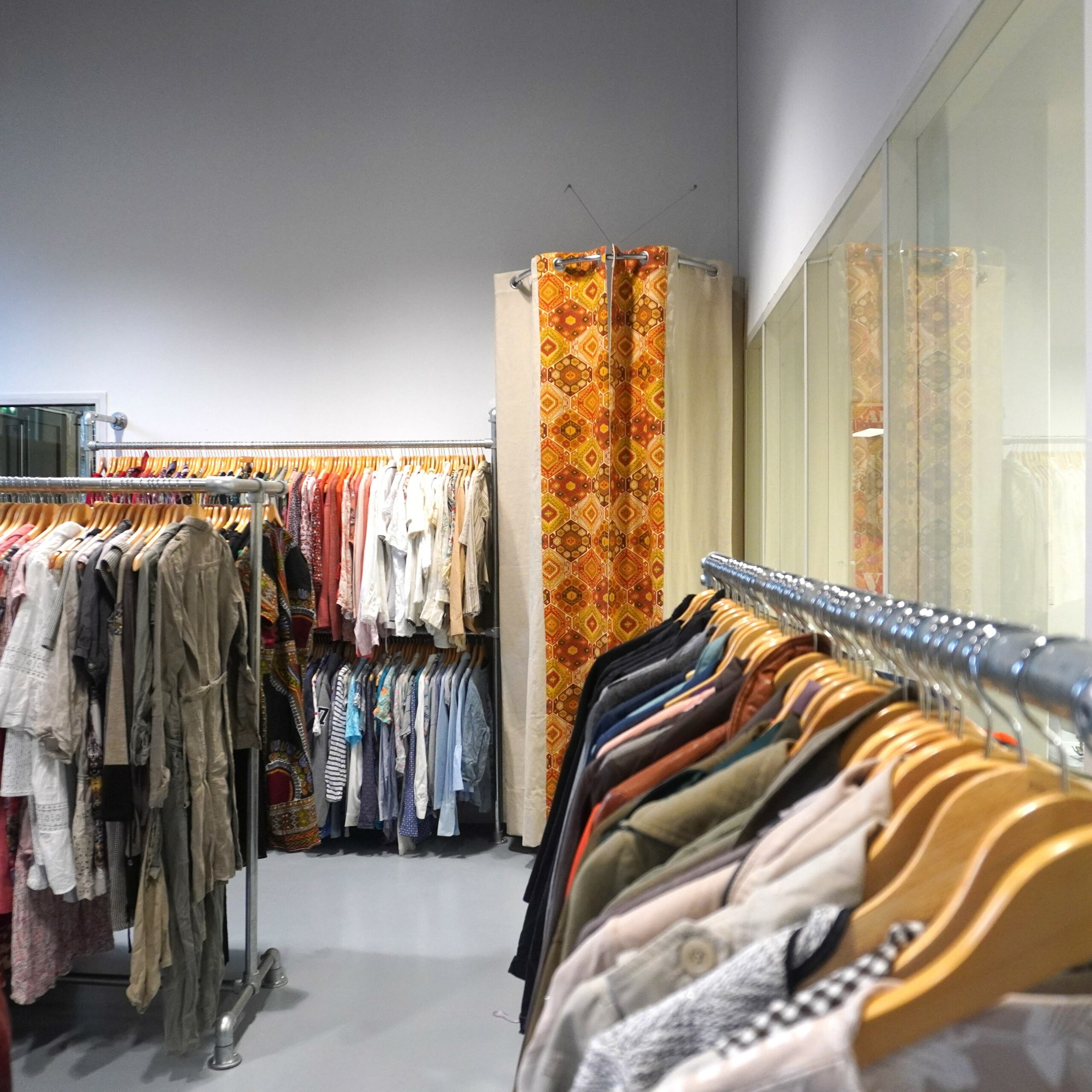 Point d’apport volontaire, vous pouvez y déposer vos textiles usagés (lien vers recyclerie ?). Dans l’espace friperie, vous trouverez une très belle sélection de vêtements pour femmes, hommes (et dans une moindre mesure, enfants). Nous proposons également des créations faites par notre équipe ou les salarié.e.s en insertion de Mode Estime, ainsi qu’un large choix de coupons de tissus et mercerie de réemploi, à côté d’une quarantaine de références de tissus en coton bio certifiés GOTS en vente à la coupe. Vous pouvez aussi venir boire un café et consulter notre bibliothèque textile. Enfin, nous organisons près d’une dizaine de cours de couture chaque semaine dans ce lieu.